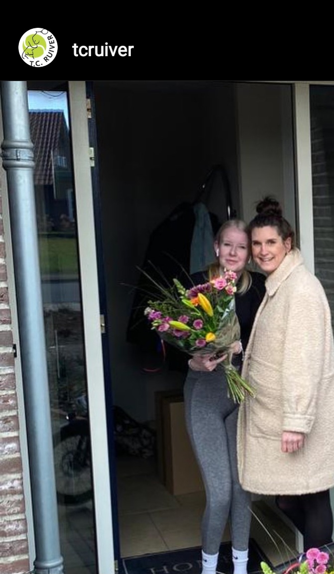 We bedanken Inge als competitieleider van onze tennisclub. Esther (de dochter van Esther nam de bloemen in ontvangst) en Stan stonden de afgelopen jaren klaar voor onze jeugdleden in de commissie!